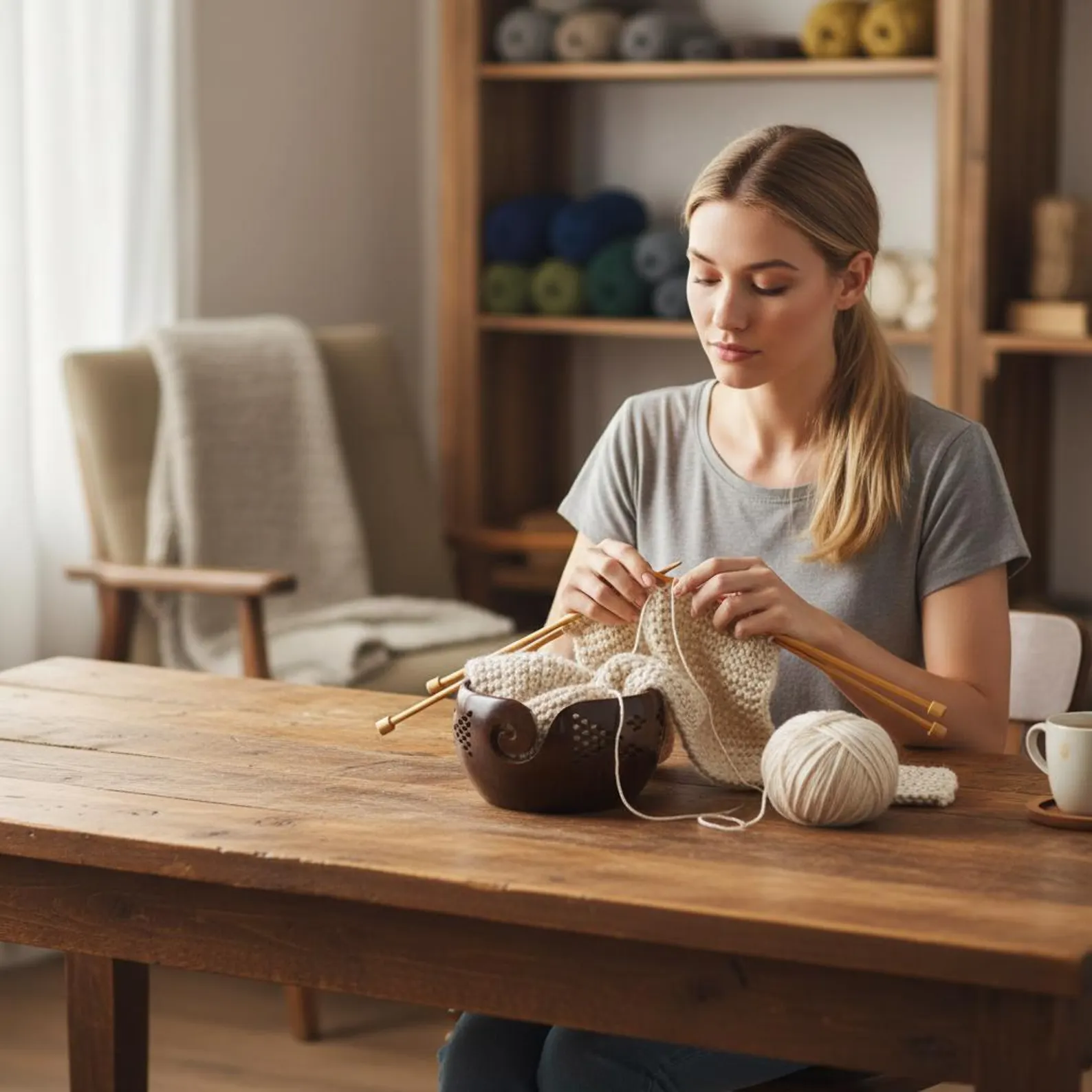 But the benefits don't end there. This yarn bowl is practical, keeping your yarn organized and fixed while regulating necessary tension as you crochet or knit. The bowl's holes even hold a pair of knitting needles, making it a versatile tool for all your knitting and crocheting needs.